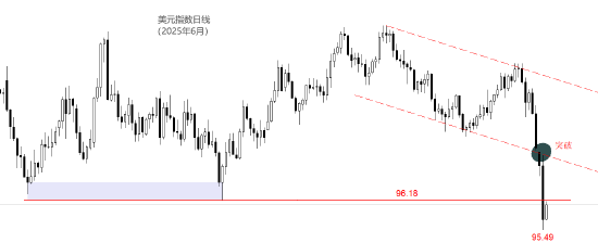 1月19日至今,七个完整交易日,美元指数只有一个交易日收阳线,其余均为大幅度阴K线。美元指数从更高点99.47猛跌至更低95.49,显著拉跌了市场人士此前对美元指数“触底反弹”的预期。