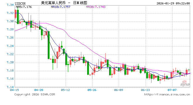 1月29日,人民币兑美元中间价报6.9771,下调16点。