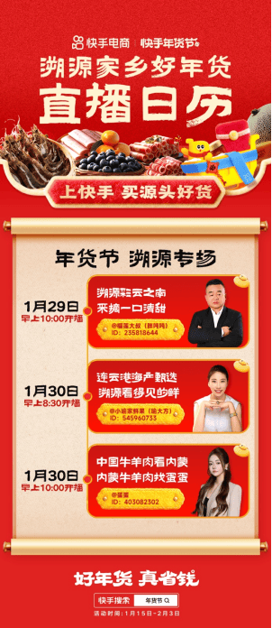 年货节期间,快手电商希望有更多主播加入溯源行列,走进各地特色年货产业带,用真实场景和专业讲解,把年味讲出来、把好货带回家。这个年货节,源产地正在成为直播间最值得期待的“主舞台”。