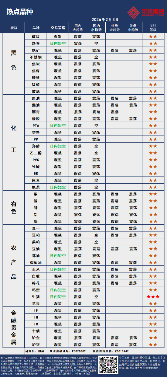 中天策略:2月3日市场分析