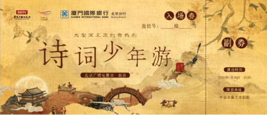 近日,由厦门国际银行北京分行参与支持的原创国风少儿音乐剧《诗词少年游》成功上演。该剧由北京广播电视台出品,五洲乐海少儿艺术团演绎,以“诗词穿越”为主题,让李白、苏轼、李清照等唐宋诗词名家在舞台上相遇相知。小演员们以扎实的表演功底和饱满的情感表达,带领观众沉浸式体验千年文脉,展现出国风美育与儿童戏剧融合的崭新表达。