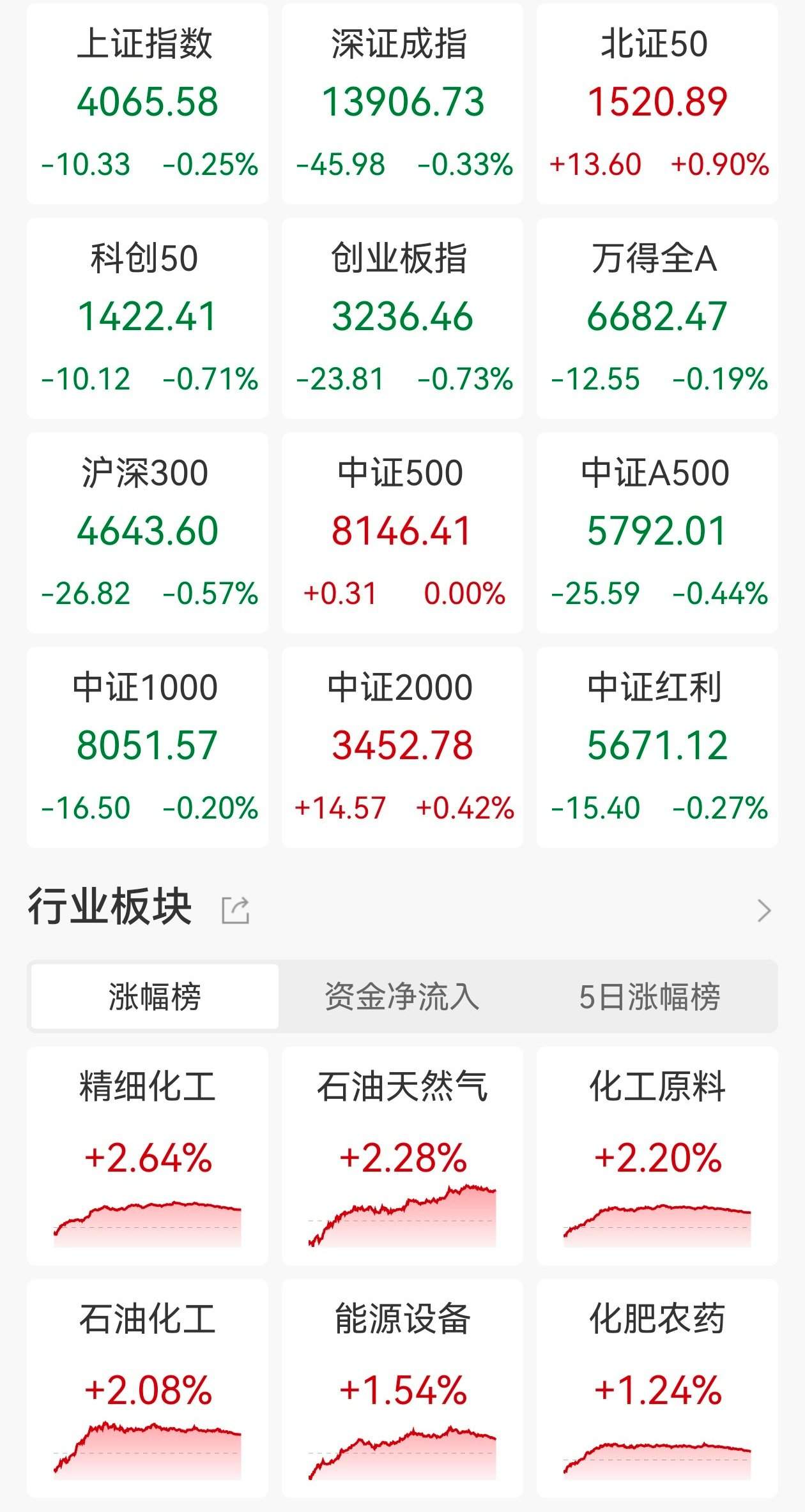 A股三大指数今日涨跌不一,截至收盘,沪指跌0.25%报4065点,深证成指跌0.33%,创业板指跌0.73%。全市场成交额2.16万亿元,较前一交易日缩量308亿元,超2700股上涨。