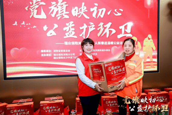 2月9日上午,由湖南省慈善总会及相关 *** 部门联合主办,瑞众保险承办的“党旗映初心 公益护环卫”关爱环卫工人新春活动温情启幕,活动现场为50名辛勤工作在一线的困境环卫工人送上了三万元的新春慰问金与价值两万元的暖心物资,并揭牌成立了面向环卫工人的“爱心驿站”,以实实在在的行动传递社会关爱,践行金融企业的温度与担当。