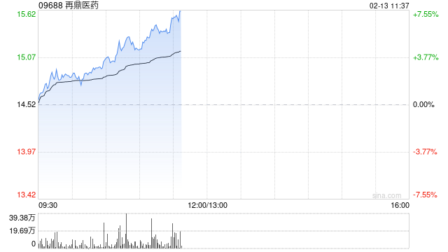 再鼎医药(09688)早盘涨超5%,截至发稿,股价上涨5.92%,报15.38港元,成交额1.02亿港元。