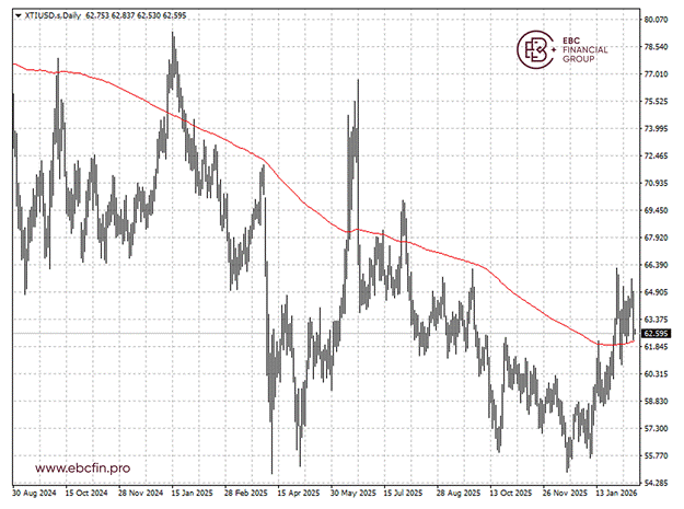 WTI原油在200日均线上方横盘整理,似乎构成重要支撑位。若未能出现明确跌破,预计价格将在接下来几个交易日内回升至64美元附近。