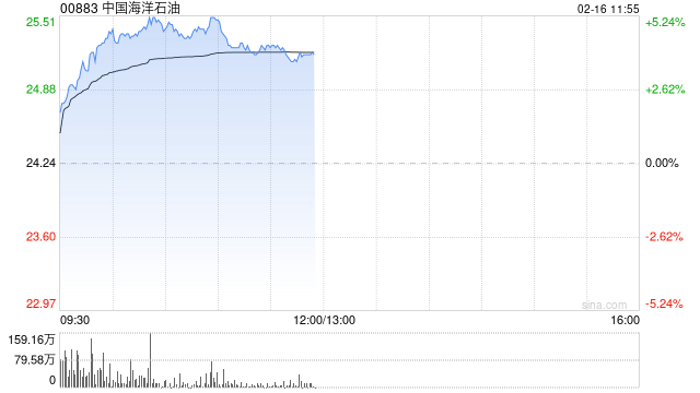 石油股午前普遍上扬 中海油涨近4%中海油服涨近3% 0561news 2026年02月16日 12:32 3 0 石油股午前普遍上扬,截至发稿,中海油(00883)上涨3.63%,报25.12港元;中海油服(02883)上涨2.97%,报9.71港元;中石油(00857)上涨1.44%,报9.18港元。