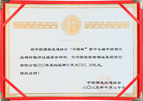 回望2025,国台以品质为基、以文化为魂、以创新为翼,交出了一份亮眼的发展答卷。过去一年,国台通过系列营销组合拳,做高品牌占位、做深消费者培育、做实销售转化力,品牌影响力与美誉度再上新台阶,品牌价值位列中国白酒第九、贵州白酒第三。国台国标酒以1183.4亿元品牌价值跻身全球酒类产品白酒类第九,硬核实力获得行业广泛认可。
