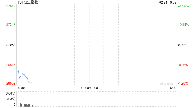 港股三大指数跌幅扩大,恒生科技指数跌超2% 0561news 2026年02月24日 10:22 4 0 2月24日消息,港股三大指数跌幅扩大,恒生科技指数跌超2%。恒生科技指数成分股中,金蝶国际跌超8%,商汤跌超5%,腾讯音乐、快手跌超4%。