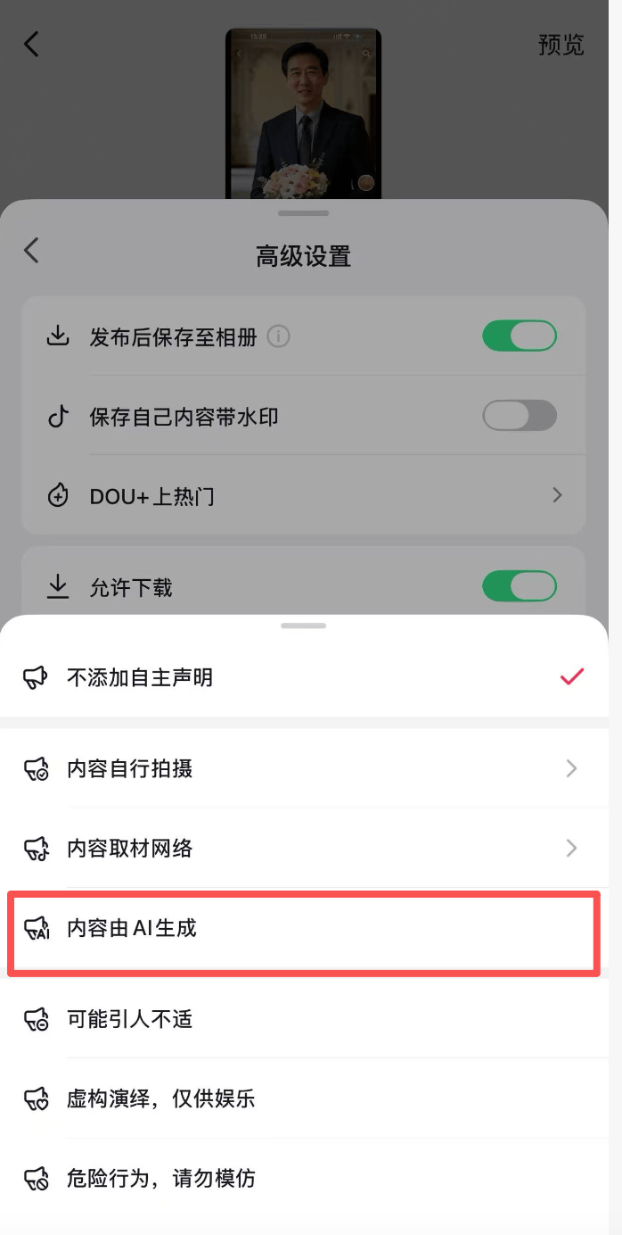 蓝鲸记者实测上传AI视频后发现,即便用户不主动声明“内容由AI生成”,平台也会在视频左下角补上声明提醒用户。然而,该机制在实践中可能存在一些漏洞,部分AI生成视频仍无标注。