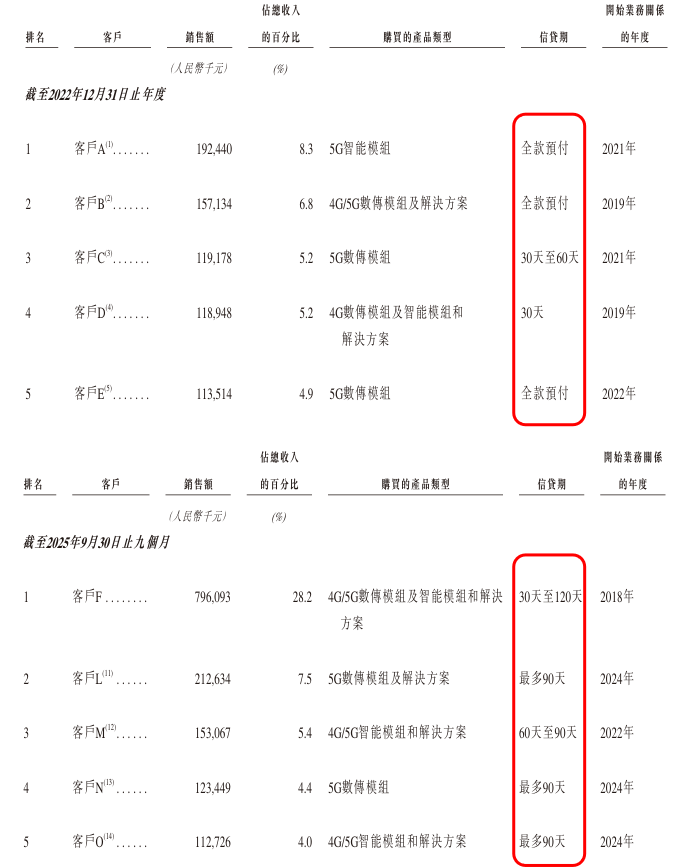 公司客户集中度持续走高,合作模式的转变进一步加剧了 *** 压力,贸易应收款项问题凸显。公司客户集中度呈逐年攀升态势,2022年前五大客户收入占比仅为30.4%,2025年前三季度已升至49.5%。更关键的是,公司与核心客户的合作模式从前期的预付款逐步转变为授予信贷期,直接导致资金回笼效率下降。