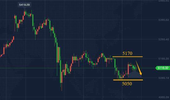 周四的观点还是很明确的,就是盯住5205压制点,冲高承压之后短空,白盘在5120企稳后直接介入多,当美盘跌破白盘低点5120也就意味着进一步下跌,更低触及5050一线企稳,今日早盘又出现了延续反弹动作,一度冲高触及至5140上方,昨晚的起跌口在5170附近,这也意味着反弹靠近了起跌后位置,这里不破将还有下探动作,一旦站稳之后将会进一步上攻。