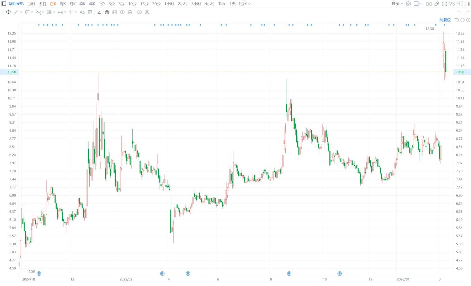 华灿光电(300323.SZ)今日盘中一度跌7.86%至10.79元。华灿光电昨日晚间公布,收到持股5%以上股东义乌和谐芯光股权投资合伙企业(有限合伙)出具的《关于减持公司股份触及1%的告知函》,获悉其在2026年2月26日至2026年3月6日,通过集中竞价的方式合计减持公司股份1770万股,本次变动触及1%的整数倍。(格隆汇)