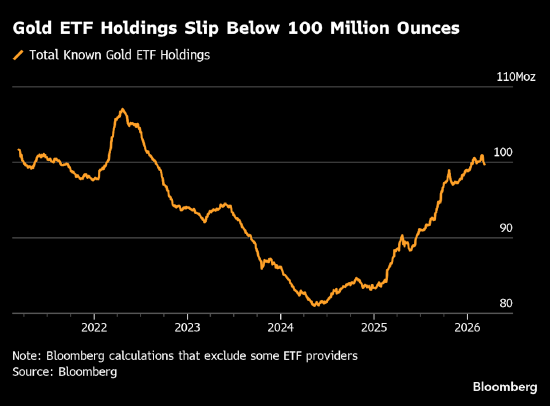 数据显示,战事爆发以来,黄金ETF持仓量有所下降。上周总持仓减少近30吨,为两年多来更大单周抛售规模。