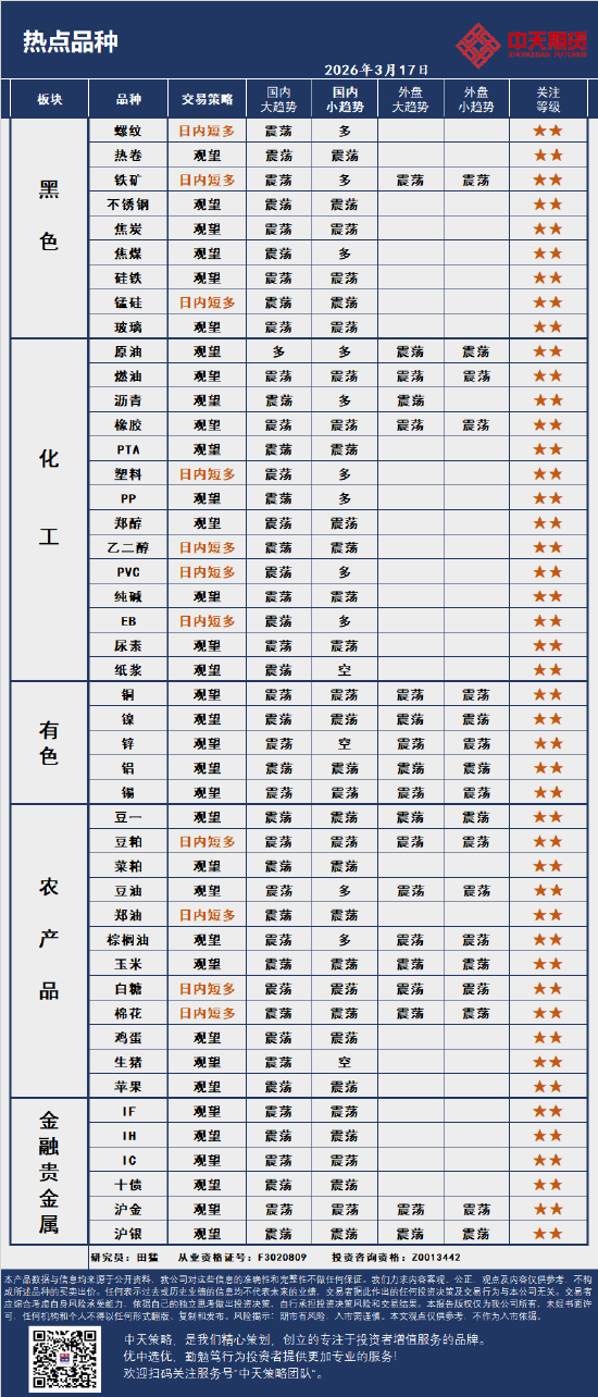 中天策略:3月17日市场分析