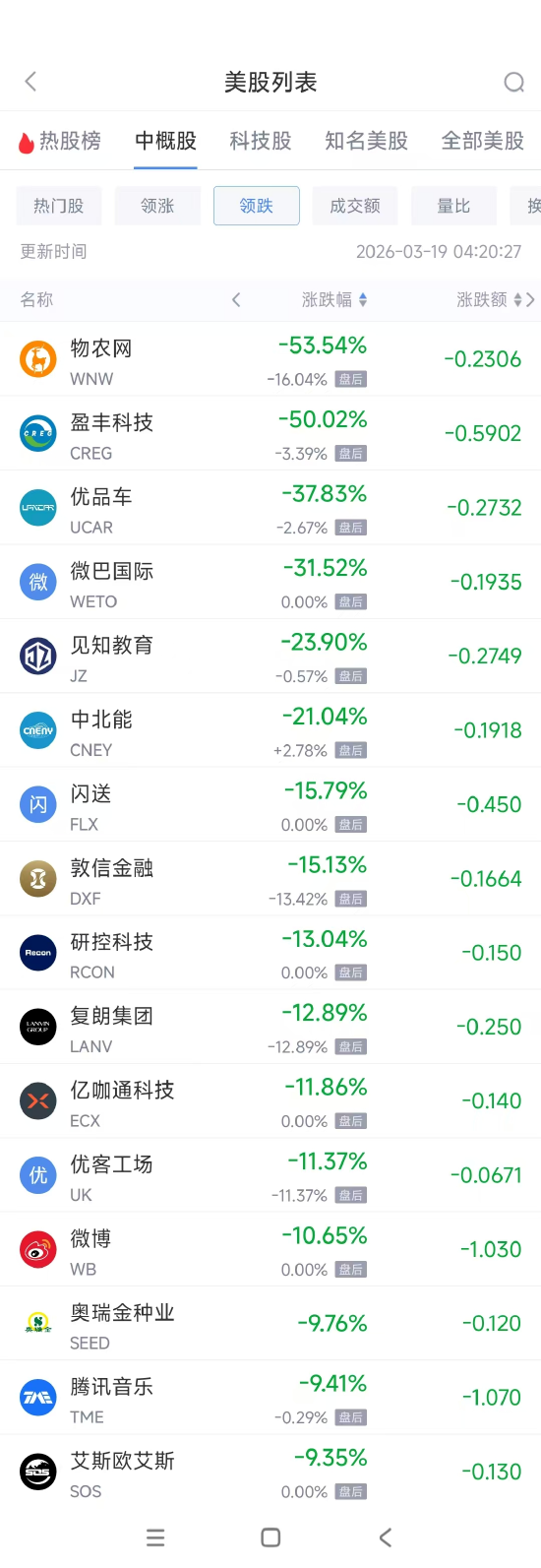 (截图来自新浪财经APP 行情-美股-中概股热门板块)下载新浪财经APP