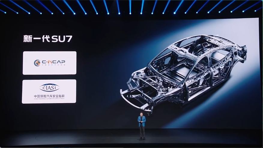 针对被动安全,新一代小米SU7在关键部位升级了2200兆帕超强钢。其内嵌式防滚架覆盖A柱至C柱区域。同时,全车四门防撞梁升级至2200兆帕规格,承载能力提升39%。车内防护方面,新车全系标配9个安全气囊,并新增后排双侧气囊。在测试执行上,小米同时采用男女假人进行全席位、全工况测试,并完成了时速60公里(相对时速120公里)的50%偏置正面碰撞极限测试,测试碰撞能量达到标准工况的1.44倍。