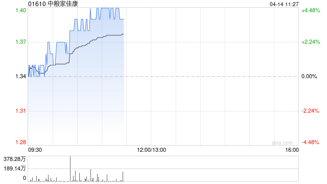 中粮家佳康(01610)早盘涨逾4%,截至发稿,股价上涨3.73%,现报1.39港元,成交额3556.78万港元。