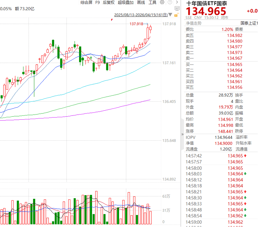 4月15日,近日长债表现较为优异。10年国债活跃券利率突破1.80;30年国债活跃券利率下行至2.28左右。相应地,十年国债ETF(511260)近5日收益率达到0.31%。从消息层面看,我国30年国债供给收缩传闻带动期限利差压缩,引发较为显著的上涨。