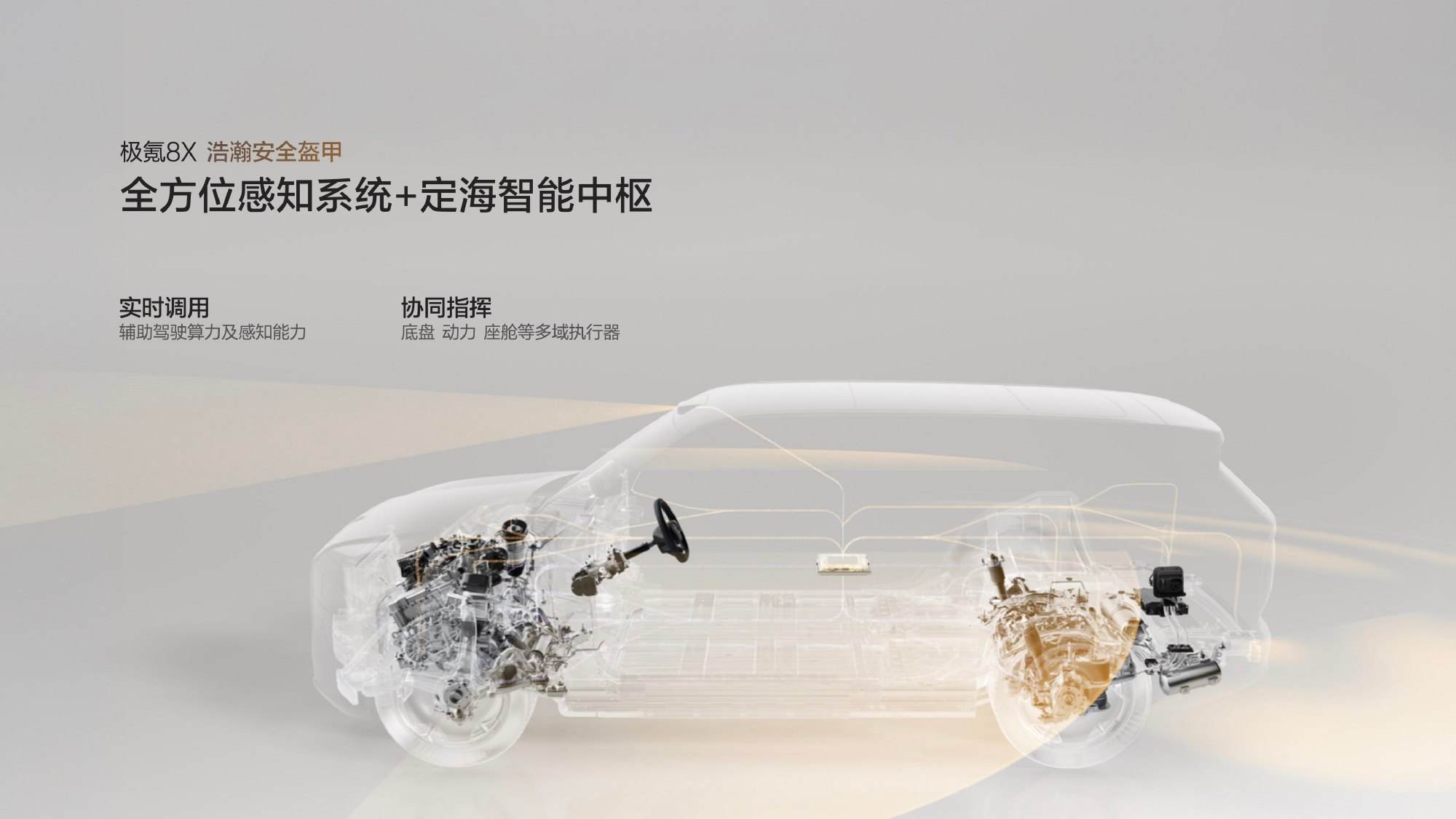智驾方面,首发新一代千里浩瀚G-ASD辅助驾驶系统,更高H9方案含43颗传感器、5激光雷达,双NVIDIA DRIVE Thor-U芯片提供1400TOPS车端算力。