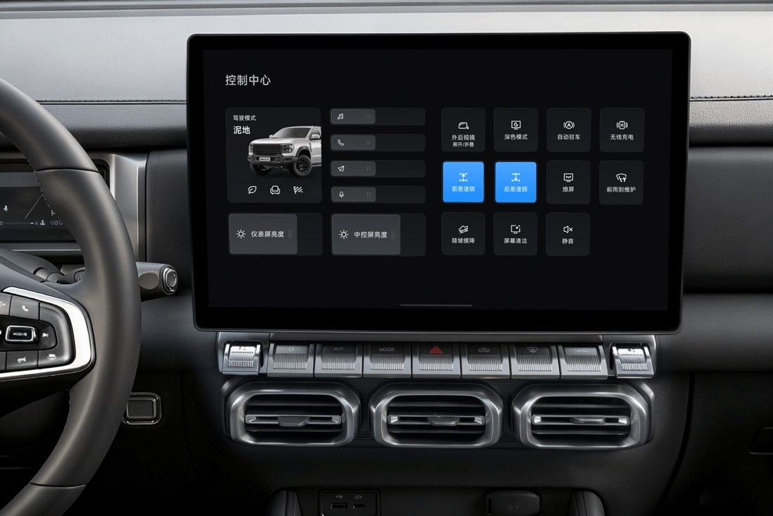越野性能方面,新车标配博格华纳分时四驱系统,搭配涵盖ECO、Sport、雪地、沙地等9种全地形驾驶模式,同时配备前后差速器锁;车辆接近角为34°,更大离去角29°,更大通过角25°,最小离地间隙达230mm,提升了复杂路况的通过性。此外,车辆还搭载蠕行模式和坦克掉头功能,可适应极端路况。