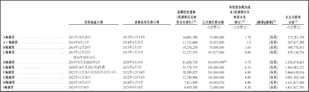 但从2022年开始,公司的估值增速明显换挡,F轮、G轮融资投后估值增幅回落至25.55%、21.79%;2024-2025年的H轮、I轮融资,估值增幅进一步收窄至5.33%、8.53%。2025年I轮融资投后估值34.31亿元,较2022年G轮的30.02亿元,三年累计增幅仅14.3%,估值增长近乎停滞。