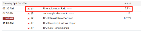 今日早间7点30分,日本公布了三月份的失业率数据,最新值2.6%,相比前值下降了0.1个百分点。日本的劳动力市场一直保持充分就业的状态,所以该数据对美元兑日元短线行情的冲击力不大。数据公布之后的一分钟K线,开盘价收盘价更高价更低价分别为:159.41、159.42、159.42、159.41,一分钟内的更 *** 动幅度也只有一个点,开盘价和收盘价也仅相差一个点,可以认为行情没有出现任何意外变化。