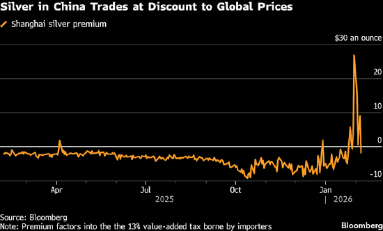 过去一周中国买盘大幅萎缩,令白银难寻支撑。国内白银价格相对国际基准由升水转为贴水,市场剧烈波动抑制买需。上海期货交易所白银持仓量跌至四年多来更低水平,反映头寸正被持续平仓。
