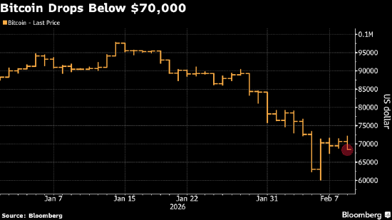 比特币经历剧烈震荡后跌破7万美元关口
