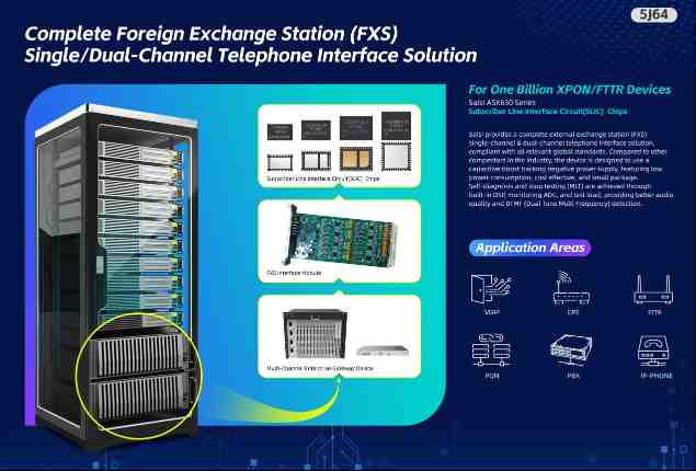 此次参展,赛思电子展品矩阵紧扣展会主题,聚焦核心通信与时频同步领域,尽显国产硬科技实力。在语音通信板块,赛思将展出完整外部交换站(FXS)单/双路 *** 接口解决方案、以及适配10亿PON/FTTR设备的AS1630、AS2630等多款国产SLIC语音芯片核心产品。作为国内首款国产SLIC语音芯片研发者,赛思打破国外厂商技术垄断,实现核心通信芯片的国产替代,为通信终端设备提供高稳定性、高性价比的国产芯选择。