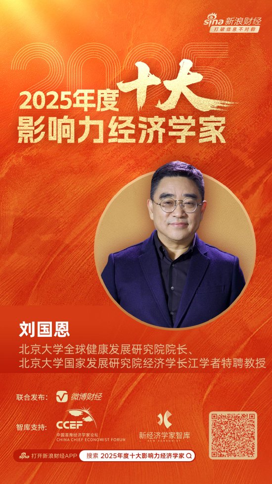 北京大学全球健康发展研究院院长、北京大学国家发展研究院经济学长江学者特聘教授刘国恩荣膺“2025年度十大影响力经济学家”!