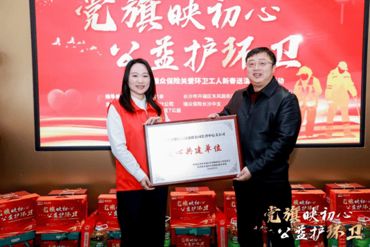 本次活动的亮点之一,是“爱心驿站”的正式揭牌。在湖南省慈善总会及相关 *** 部门、瑞众保险多方领导的共同见证下,设立于瑞众保险职场内的“爱心驿站”宣布启用。该驿站将全年面向环卫工人开放,免费提供饮水、热饭、歇脚、充电、应急药品等贴心服务,将一次性的节日慰问升华为常态化的温暖守护。环卫工人所在的环卫中心与街道现场授予瑞众保险“爱心伙伴单位”与“爱心共建单位”荣誉牌匾,这份荣誉既是认可更是责任,瑞众保险将持续以实际行动深化公益共建,为一线环卫工人筑牢暖心保障。