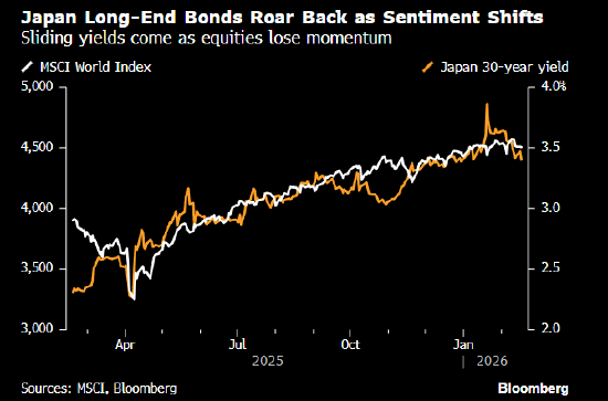 这是自日本首相高市早苗本月历史性胜选以来的首次常规性国债标售。尽管收益率在1月份因财政担忧一度跃升至多年高位,但在选举后下跌,因为投资者押注高市的超多数议席将带来更明确的政策方向,降低最坏财政情境的风险。
