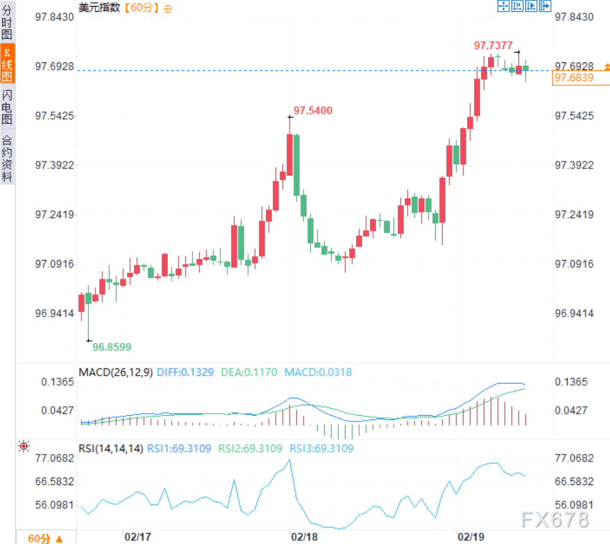 理论分析最终体现在了实际的市场走势上。纪要文本发布后,外汇市场反应极为迅速。纪要中关于“讨论加息”和“谨慎降息”的内容被消化后,美元指数持续攀升,周三美元指数涨0.62%,周四亚市时段,美元指数于97.70附近窄幅震荡,一度触及97.73的两周高点。