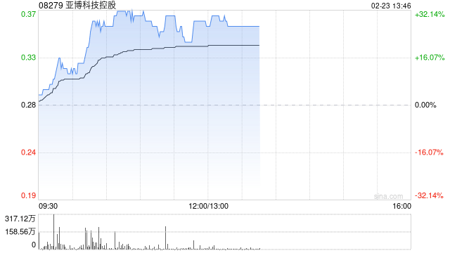 亚博科技控股(08279)午后股价上涨26.79%,现报0.355港元,成交额1564.49万港元。