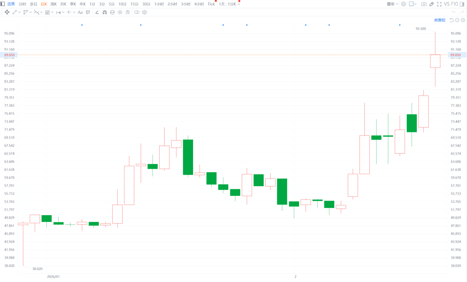 马年开局,迅策(3317.HK)“策马奔腾”连续两个交易日大涨,今日一马当先强势领涨港股AI概念股,午后涨幅进一步扩大至19.67%报95.5港元,股价续创上市新高,市值站稳300亿港元。迅策于2025年12月30日登陆港交所,迄今仅36个交易日,现价较招股价48港元已累涨约一倍。