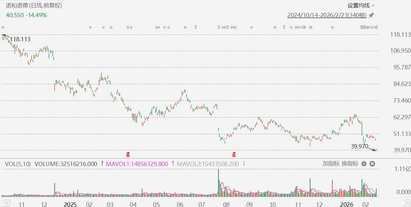 美股异动丨诺和诺德大跌近16%,礼来涨超4% 0561news 2026年02月24日 02:03 1 0 诺和诺德(NVO.US)盘初大跌近16%,报39.97美元;礼来(L *** .US)盘初涨超4%,报1055.47美元。诺和诺德称其减肥药物卡格列肽(Cagrisema)的实验效果不及礼来的替尔泊肽(Zepbound)。