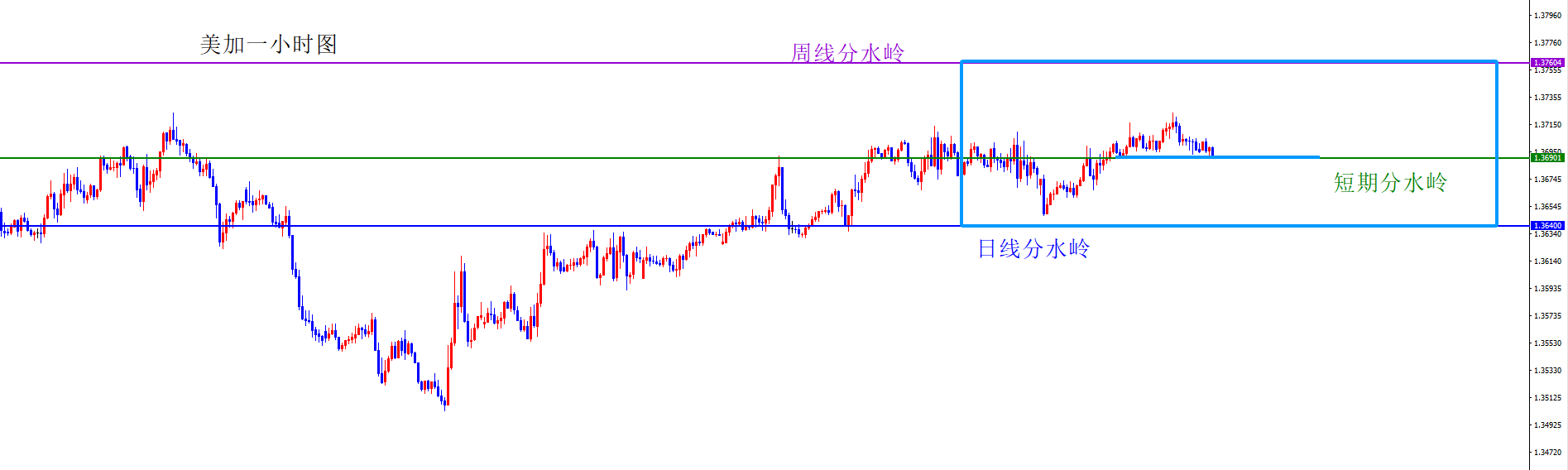 关键分水岭1.3690区域,短线偏向于1.3640-3760区间震荡,中间1.1690为震荡区间分水岭