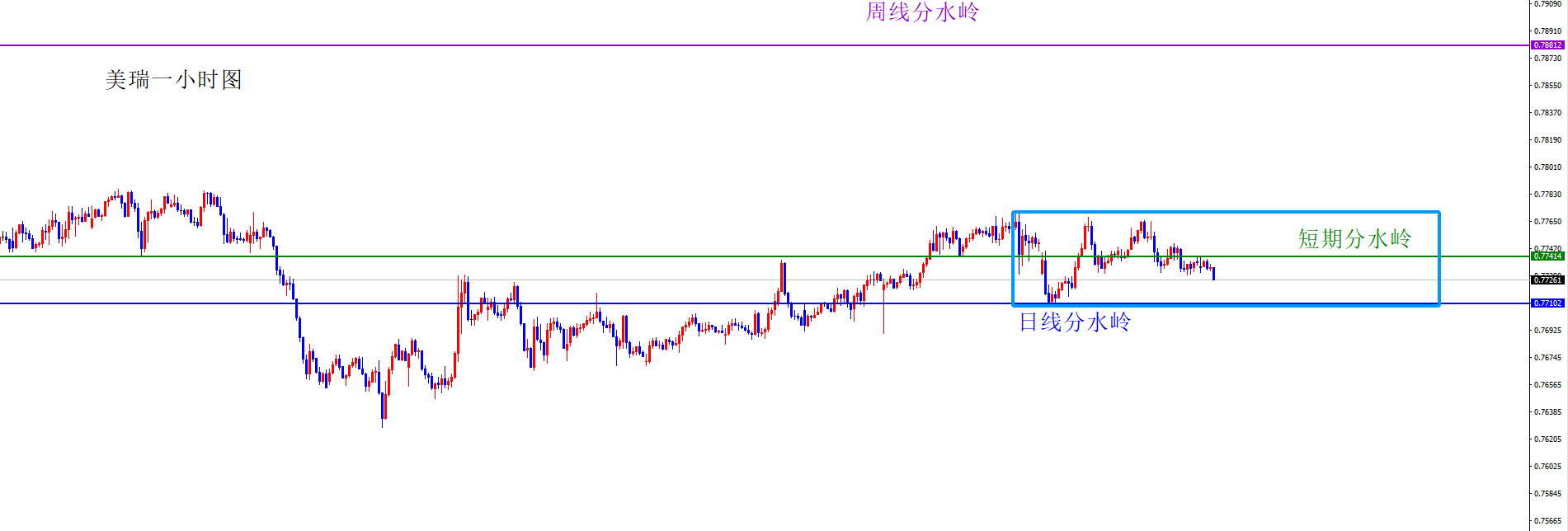 关键分水岭0.7740区域,短线偏向于震荡