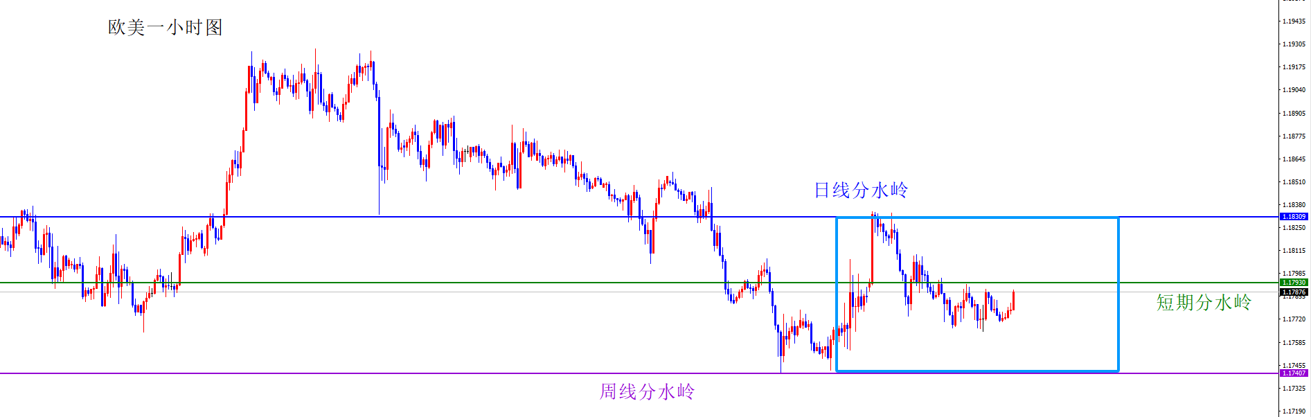 关键分水岭1.1790区间,短线偏向于1.1740-1.1830区间震荡,中间1.1790为震荡区间分水岭