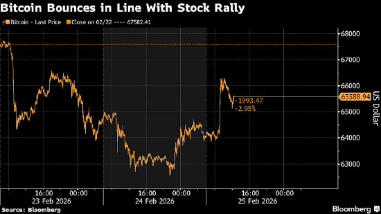 此番早盘上涨与国情咨文讲话前股市走高同步,特朗普在讲话中为其经济政绩进行了辩护。本周早些时候,更高法院作出判决,裁定特朗普无权动用紧急权力征收所谓对等进口税(其核心政策主张之一),这一消息导致加密货币价格大幅跳水;此前特朗普曾援引另一项权力,宣布将对全球征收15%进口税。