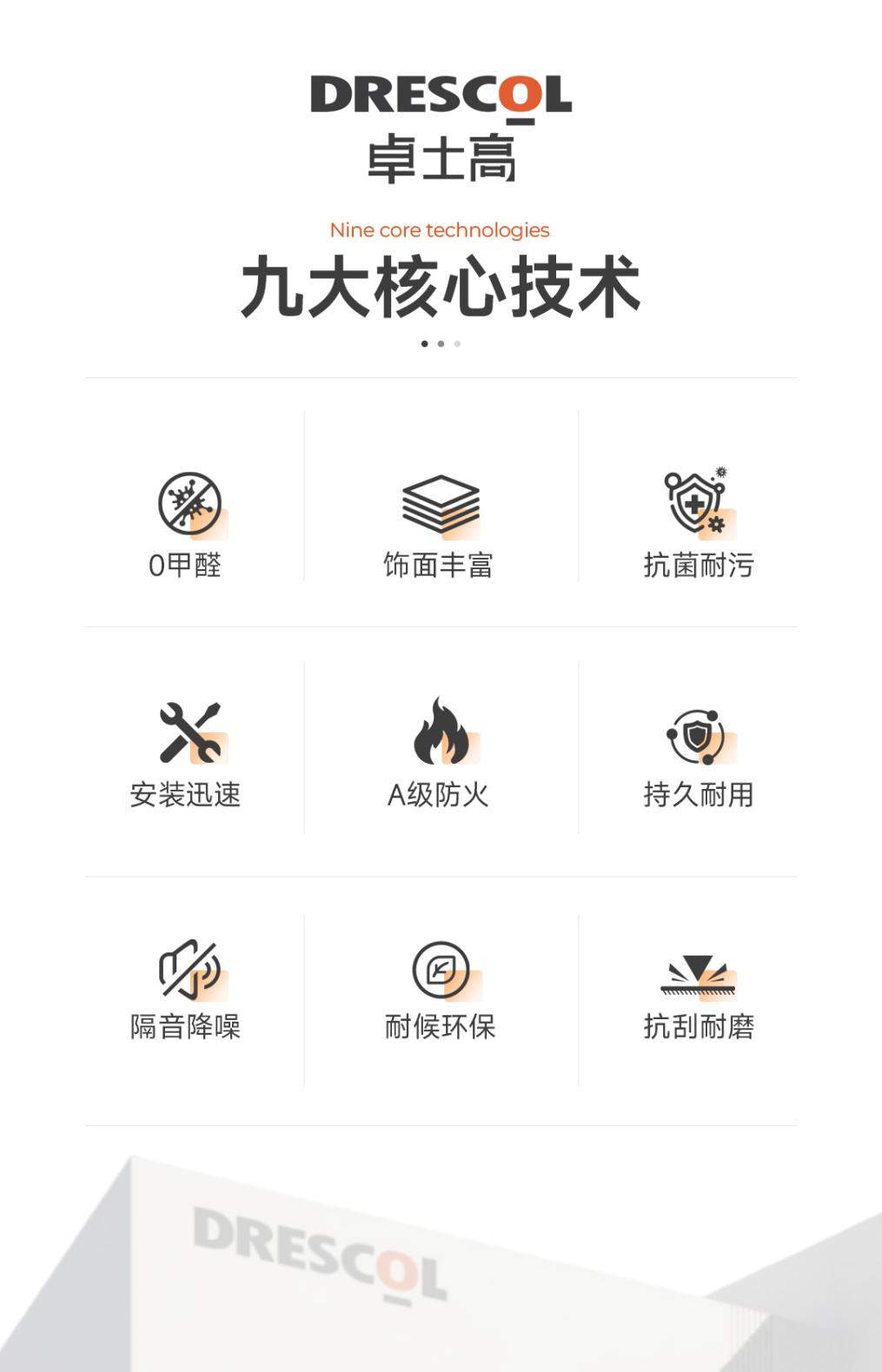 基于建筑行业对轻量化、高强度金属材料的需求升级,卓士高将航空级的研发标准、材料检测要求、生产工艺应用于建筑用金属复合板的研发与生产,形成了独树一帜的技术差异化优势。DRESCOL卓士高的九大核心技术,涵盖0甲醛、饰面丰富、抗菌耐污、安装迅速、A级防火、持久耐用、隔音降噪、耐候环保、抗刮耐磨九大维度,精准对应建筑装饰过程中的实际痛点,让金属复合板在户外幕墙应用中彻底突破传统材料的性能局限。