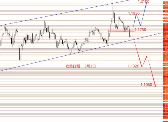 3月3日,美指上周区间震荡,周图收小阴十字星。从图形来看,最终向上破位,也符合大框架思路。上周一文字策略错误扫损离场,周四改低多博上破思路正确。目前已成功站稳98.10上方,所以后市按上破框架延用思路执行,中线按大反弹对待,目标102.80和103.20.若再跌回至98.00下方后,再改框架为大的低位震荡格局。故今日操作策略:98.30/98.20区域做多,止损97.90,目标看向101和102.80和103.20区域。控制仓量,严格止损。