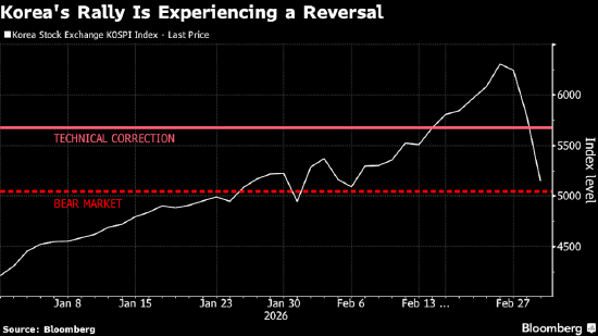 本周的股市回调,为长期以来警告人工智能板块狂热涨势已脱离基本面的质疑者提供了新的依据。眼下,这些担忧与剧烈的地缘政治冲击相互叠加,迫使投资者重新评估风险、研判油价上涨带来的通胀威胁,并思考这些压力将如何传导至全球市场。
