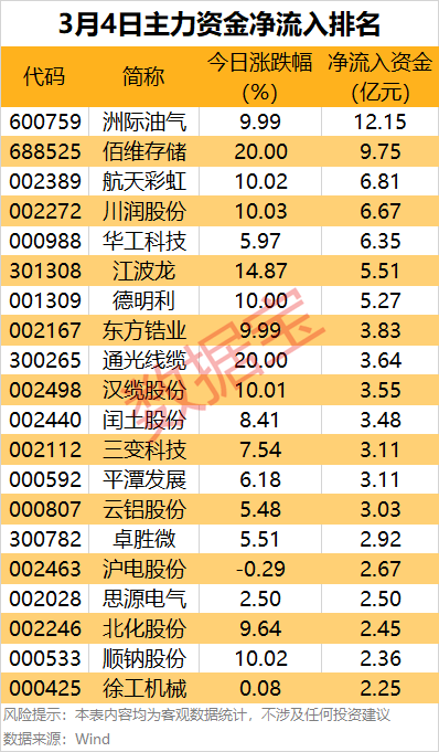 此外,还有航天彩虹(002389)、川润股份(002272)、华工科技(000988)、江波龙和德明利等主力资金净流入金额居前。