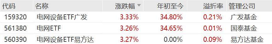 海内外需求共振催化电网行情,电网设备ETF涨超4%,电网设备ETF广发、电网ETF、电网设备ETF易方达涨超3%