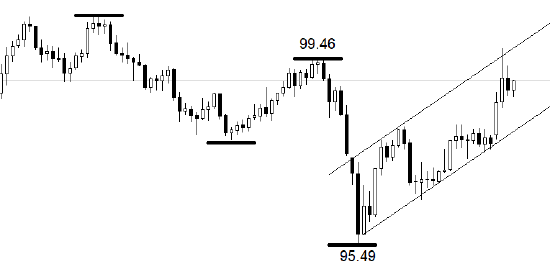 行情方面。日线级别,美元指数处于上涨波段:中期高点为99.46点,中期低点为95.49点,两个关键点位构成美元指数中短期的中枢区间。本周之前上涨波段一直运行于中枢区间内部,本周二,受美伊冲突影响,美元指数飙涨至99.66,突破中期高点。市价已经和通道线上轨交叉,未来数日可能出现短线回落走势。褐皮书的发布对美元指数的影响偏向长期,日线级别行情并未有大幅波动。