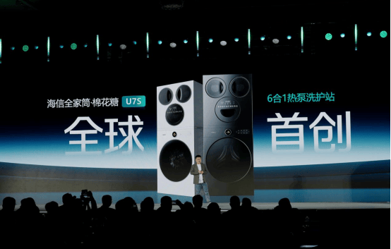 继2017年全球首创三筒洗衣机,到2025年全球首创4合1热泵洗烘一体机,3月5日,在“海信世界杯营销暨定制产品发布会”上,海信洗衣机再次发布颠覆性创新产品:全球首创6合1热泵洗护站――海信全家筒 ・ 棉花糖U7S四筒洗衣机,同步为年轻一代用户推出线上爆款新品――海信全家筒 ・ 大薄荷E5S四筒洗衣机。新一代全家筒首创集成在洗衣机里的洗鞋机,并跨越升级Ai宙斯热泵 3.0 技术,烘干效率提升32%,并以“自由组合 衣鞋同净”的颠覆性设计,在 0.5m³ 的空间内实现全家衣物、鞋子的0手洗|0等待|0 交叉,从分类、健康、护理、体验四大维度进行升级,让用户体验到 “从上到下、从里到外、从头到脚” 全身分区健康洗护躺平式自由。