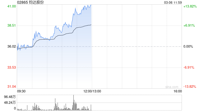 钧达股份(02865)午前涨超13%,截至发稿,股价上涨12.99%,现报40.70港元,成交额8.03亿港元。