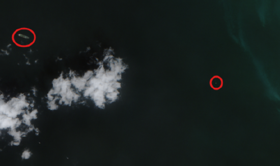该图像还显示,五艘超大型油轮(VLCC)和两艘苏伊士型油轮正停泊在该岛的南部和东部海域。
