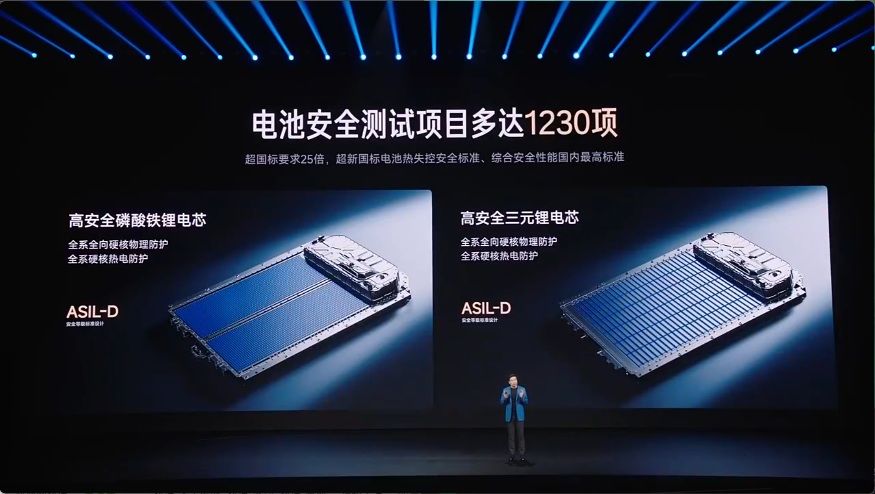 在动力电池安全管控上,小米依托自建电池包工厂加强制造技术掌握与质量协同。电池包具备17层高压绝缘防护,满足55度满电状态下单电芯热失控不扩散、不起火、不爆炸的标准。底部物理防护新增1500兆帕防刮横梁及防弹涂层,以抵御碎石刮擦风险。此外,小米完成了高达1230项电池安全测试,并对三元锂电池包在55度高温满电状态下进行了针刺实验。